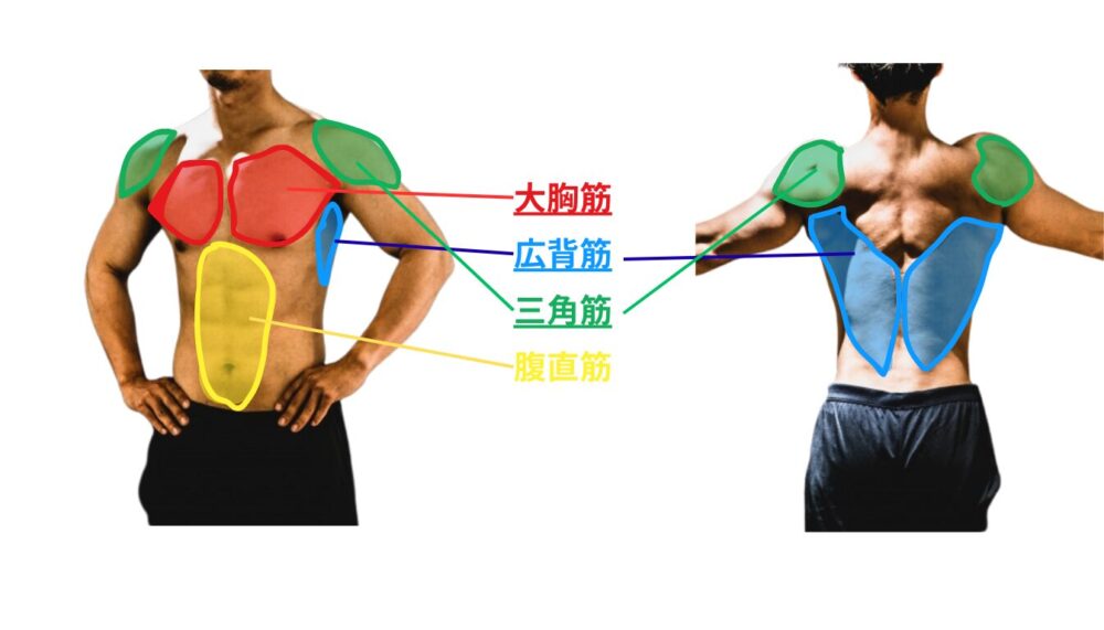 - 胸・背中・肩・腹筋を鍛える7種目をベースに鍛えよう